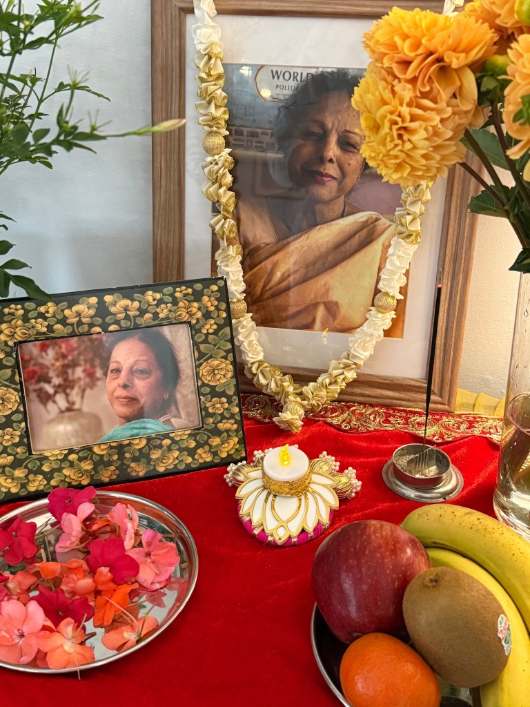 The bhabhis of the family cleaned her with milk and honey — performing antim seva — the last service. Women caring for a woman one final time — giving her a dignified goodbye. My aunt’s daughter-in-law— pulled off her own gold earring to place between Mumma’s lips, to send her off with a token. Rituals unknown to us until that moment. It was a strange time to be an adult; so many elders were absent. No one to guide us. No one to help us prepare.